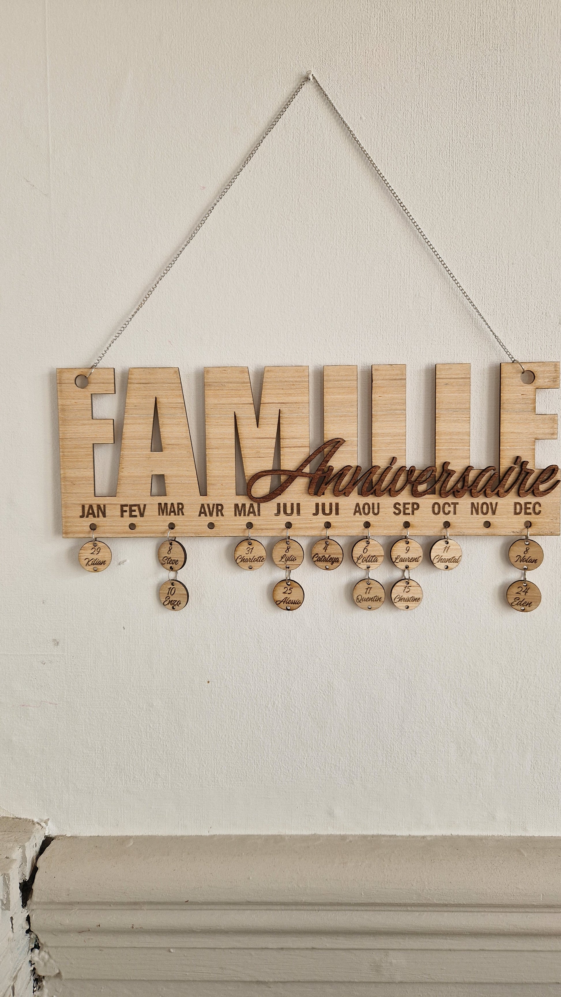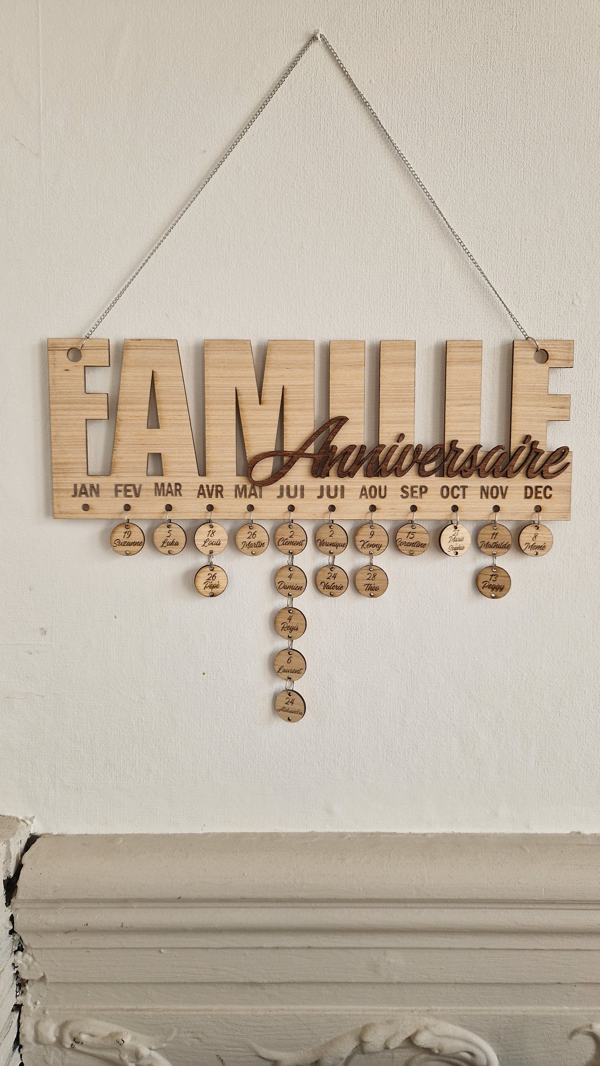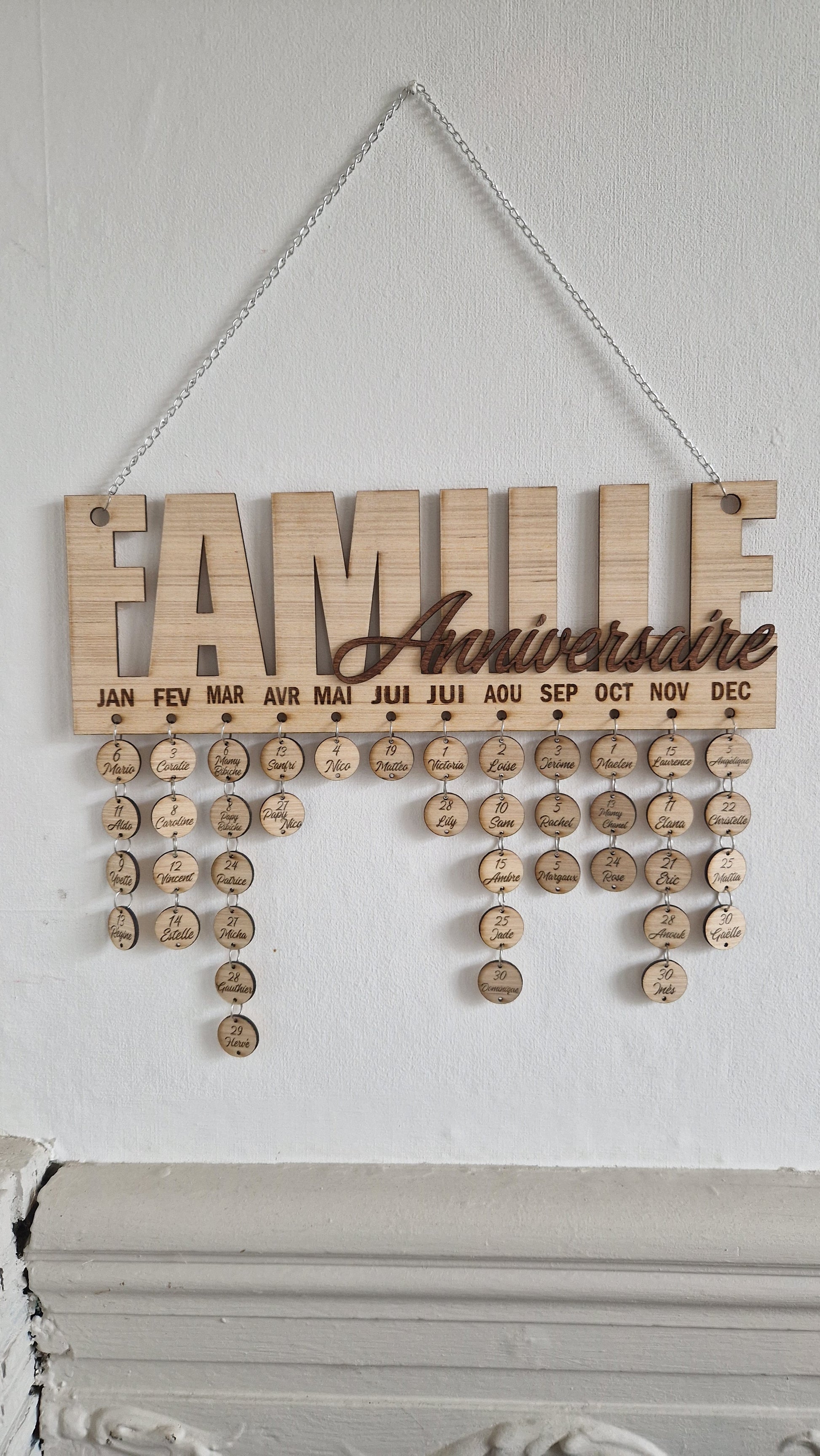 Calendrier anniversaire, Calendrier mural, Calendrier en bois.