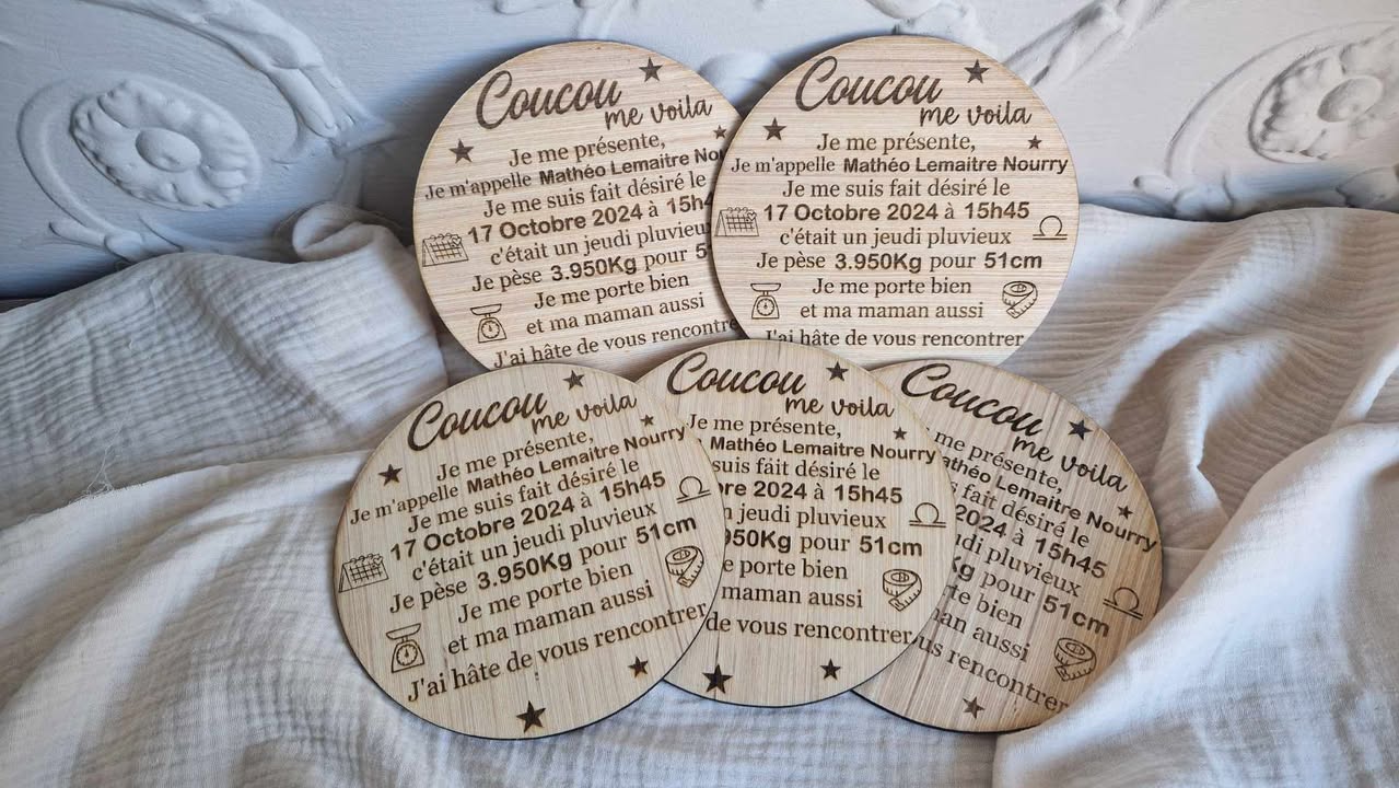 Immortalisez la plus belle des arrivées avec notre carte de naissance ronde (15 cm de diamètre). Idéale pour annoncer ou conserver un précieux souvenir, cette carte permet d’inscrire toutes les informations essentielles de bébé : prénom, date de naissance, poids, taille, heure…