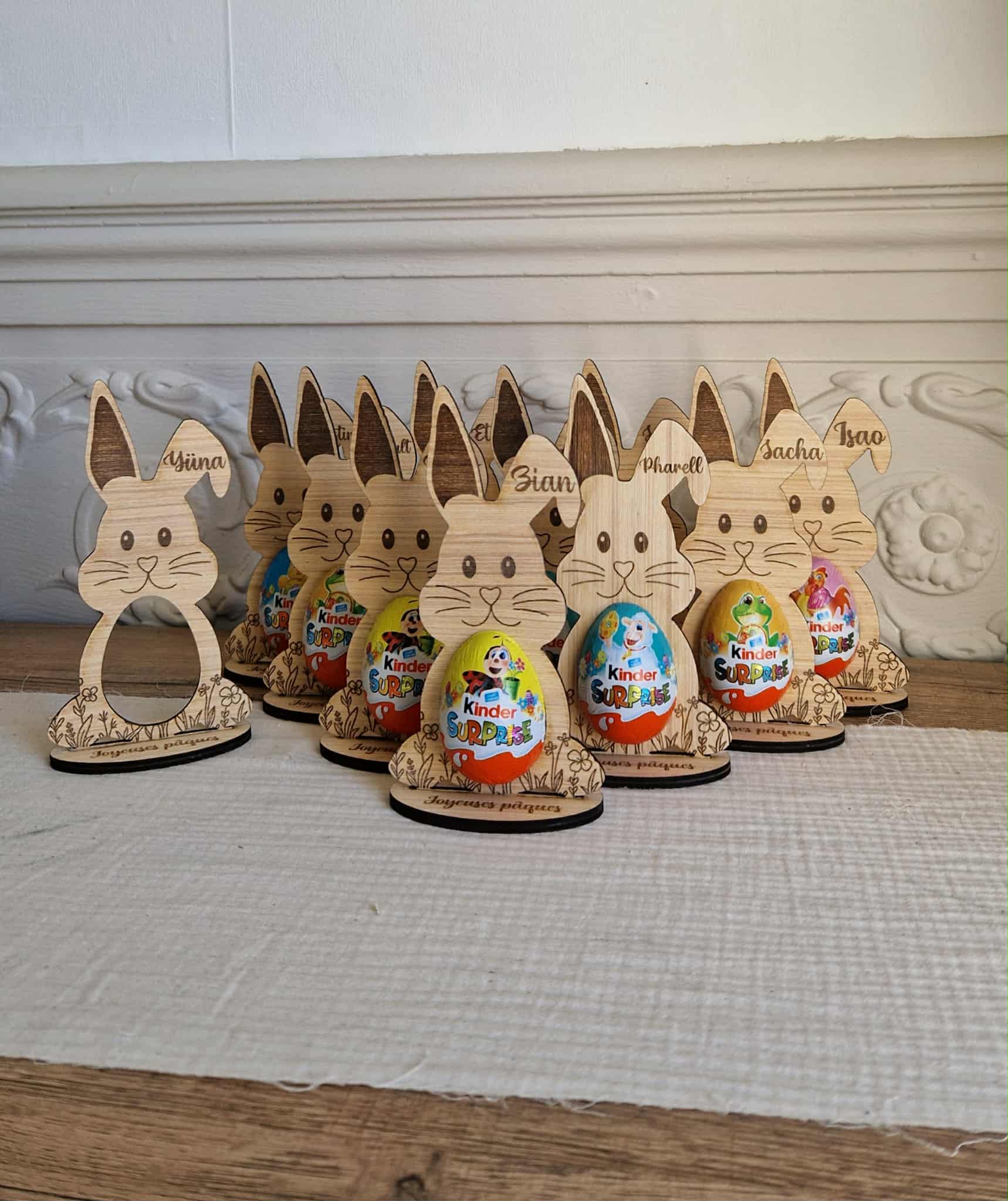 Lapin de Pâques en bois personnalisé – Support œuf Kinder