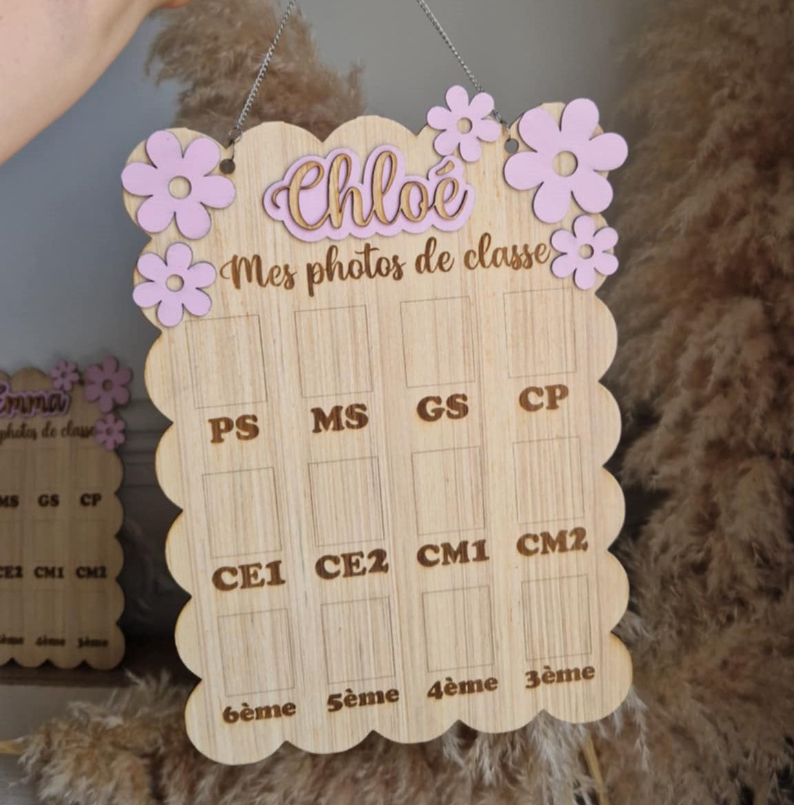Immortalisez les années scolaires de votre enfant avec ce joli panneau en bois "Mes photos de classe", de la Petite Section à la 3e.
